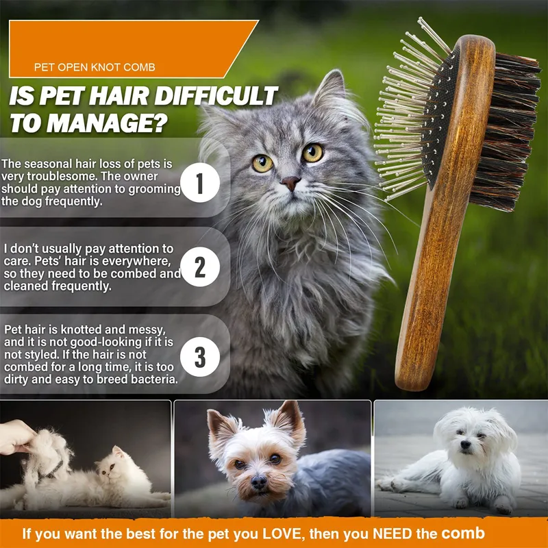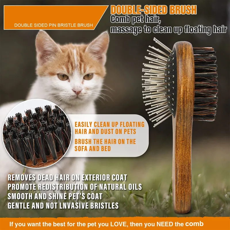 Crafted with high-quality materials, this brush features a solid wood handle that is not only durable but also comfortable to hold, making grooming sessions easier on your hands. The pin side is designed with stainless steel needles that smoothly glide through your pet’s fur, removing knots without causing discomfort. On the other side, the boar bristle brush helps distribute natural oils throughout your pet’s coat, keeping it shiny and healthy.