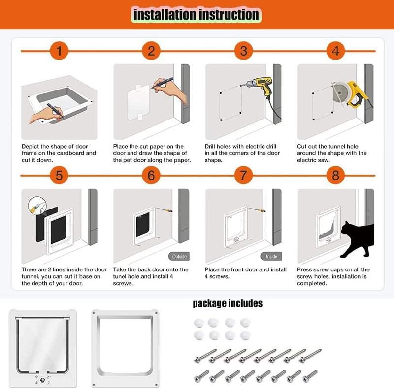 Crafted from high-quality ABS material, this cat flap door is built to last. It’s designed to fit all types of doors, including hollow, solid, and interior doors, making it a versatile addition to your home. Installation is a breeze with the included guide and two packs of screws (both long and short), allowing you to customize the installation based on the thickness of your door or wall. The transparent flap lets your pet see through, reducing anxiety and encouraging them to use the door confidently.
