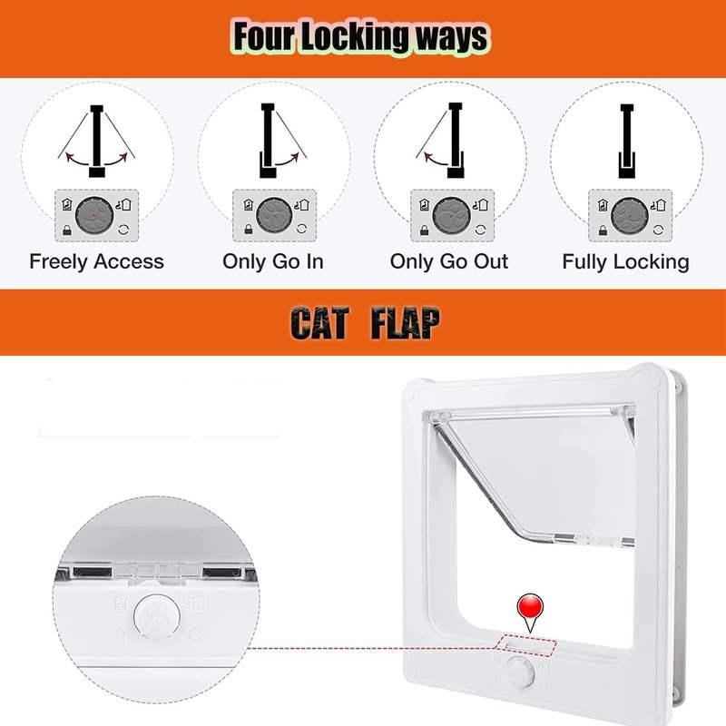 This 4-Way Locking Cat Flap Door is designed with both pet and owner in mind. The flexible locking system lets you choose the level of access your pet has, whether you want them to roam freely or keep them contained. The weatherproof design ensures that your home stays comfortable and protected from the elements, while the durable ABS material guarantees long-term use. With its easy installation process, you can have this door up and running in no time, providing your pet with a convenient and secure way to move around your home.