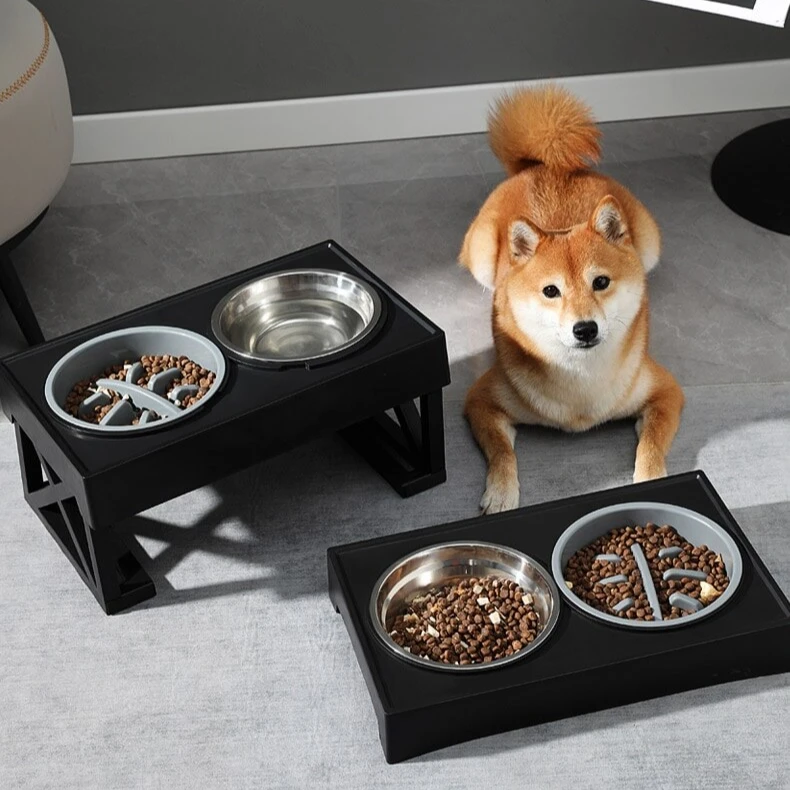 Adjustable Height Dog Bowl Stand with Slow Feeding Option – Suitable for Medium to Large Dogs