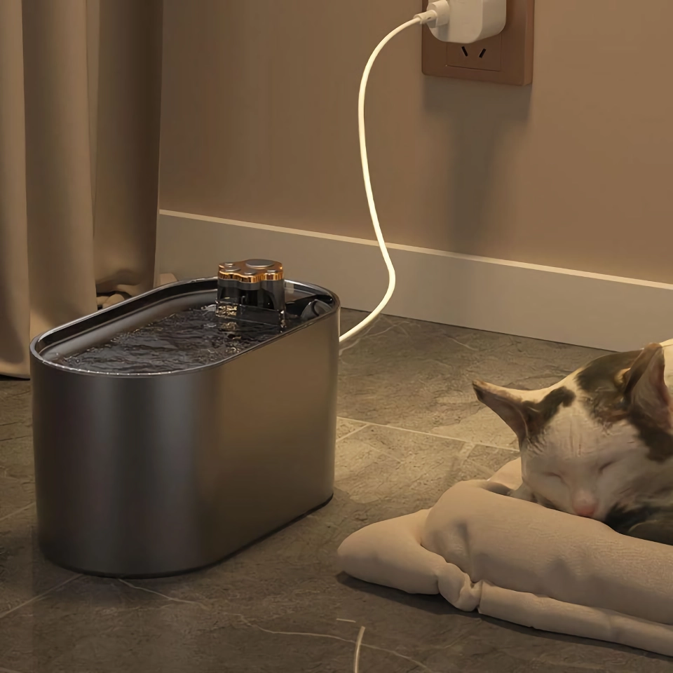 The Automatic Cat Water Fountain is crafted from durable plastic, making it both lightweight and easy to clean. It features a powerful yet energy-efficient pump equipped with anti-dry boiling technology, which prevents burnout and keeps the motor running smoothly. With a low-voltage USB power adapter, this fountain is safe to use in any home environment.