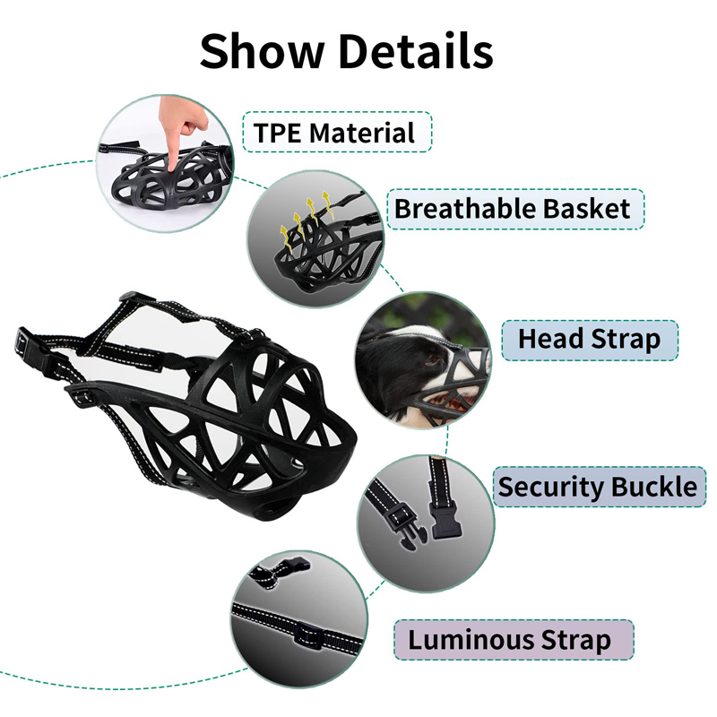 - Breathable Basket Design: Made from durable TPR (thermoplastic elastomer), this muzzle allows your dog to pant, drink water, and take treats comfortably. It’s airy and prevents overheating, ensuring your dog remains cool.