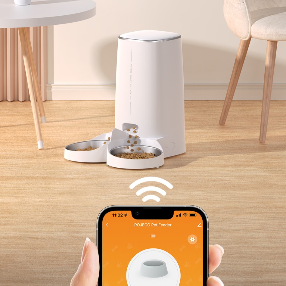 Never worry about your pet’s meals again, whether you’re at work, traveling, or just enjoying a day out. Our Smart WiFi Automatic Pet Feeder ensures your furry friends are fed right on schedule, every time. This high-tech food dispenser is designed to cater to the dietary needs of both cats and dogs, making it a versatile addition to any pet owner’s home.