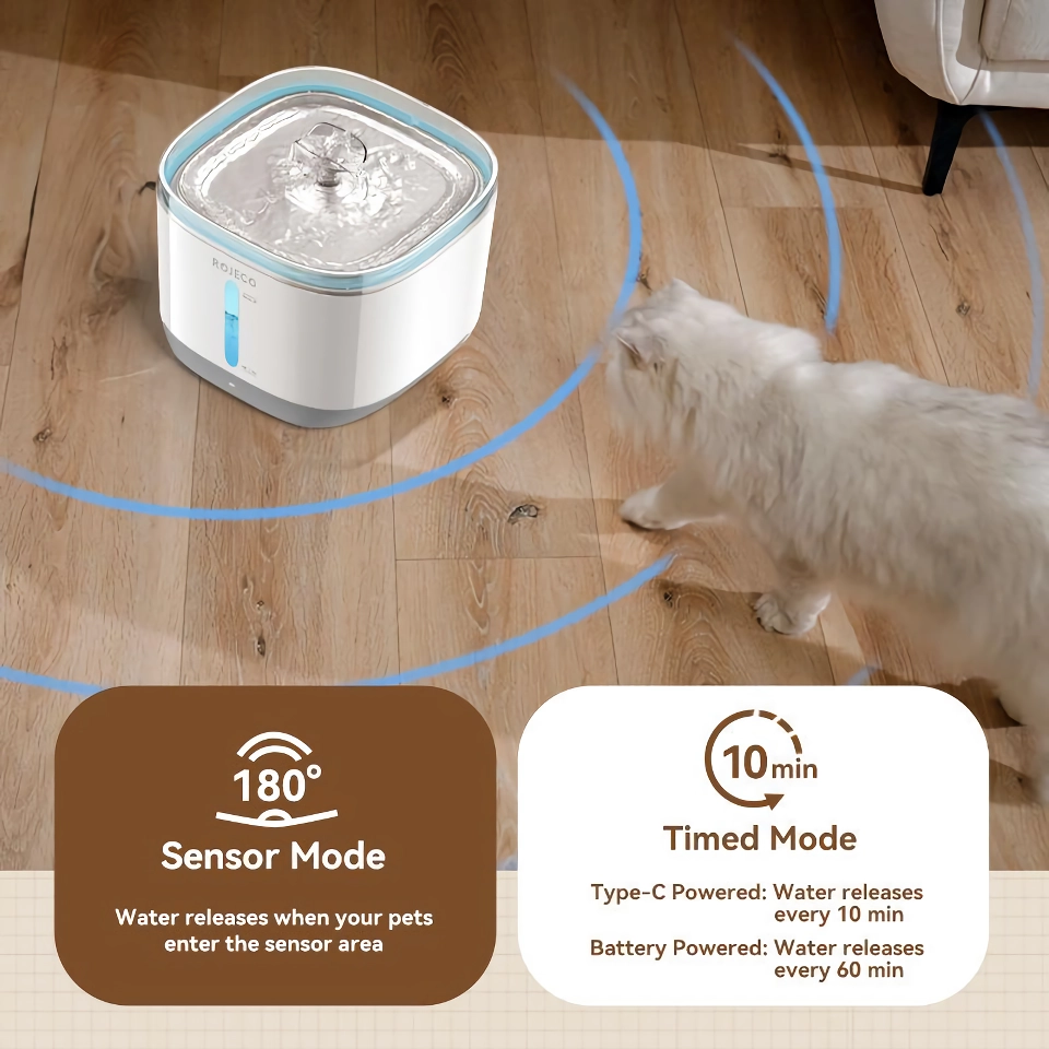 - Smart Radar Sensor: Releases water when your pet enters the sensor area, ensuring fresh water every time.