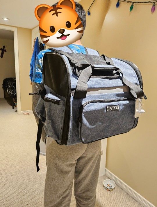 | Content | Travel with Your Pet in Style and ComfortTake your furry friend on your next adventure with the Airline Approved Pet Backpack Carrier. Designed to meet the requirements of major airlines like Southwest Airlines and Air Canada, this pet carrier backpack ensures a hassle-free travel experience for both you and your pet. With dimensions of 17"L × 13"W × 9.5"H, it fits perfectly under the cabin seat, making it an ideal choice for air travel.Features Designed for Safety and ComfortThis pet backpack carrier is packed with features that prioritize your pet's safety and comfort: