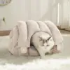 Why Choose Our Cozy Arched Cat Cave Bed?This cat bed is more than just a pet accessory; it’s a haven for your cat. The arched design creates a natural cave-like environment that cats instinctively love, offering them a sense of security and privacy. The soft, cushioned interior provides the ultimate comfort, ensuring your pet can relax completely and enjoy uninterrupted sleep. The bed’s non-slip, waterproof bottom ensures it stays firmly in place, even on slippery surfaces, while the detachable bedding makes cleaning a breeze. Ideal for use in any season, this bed keeps your cat warm in the winter and comfortable year-round.Benefits of the Cozy Arched Cat Cave Bed