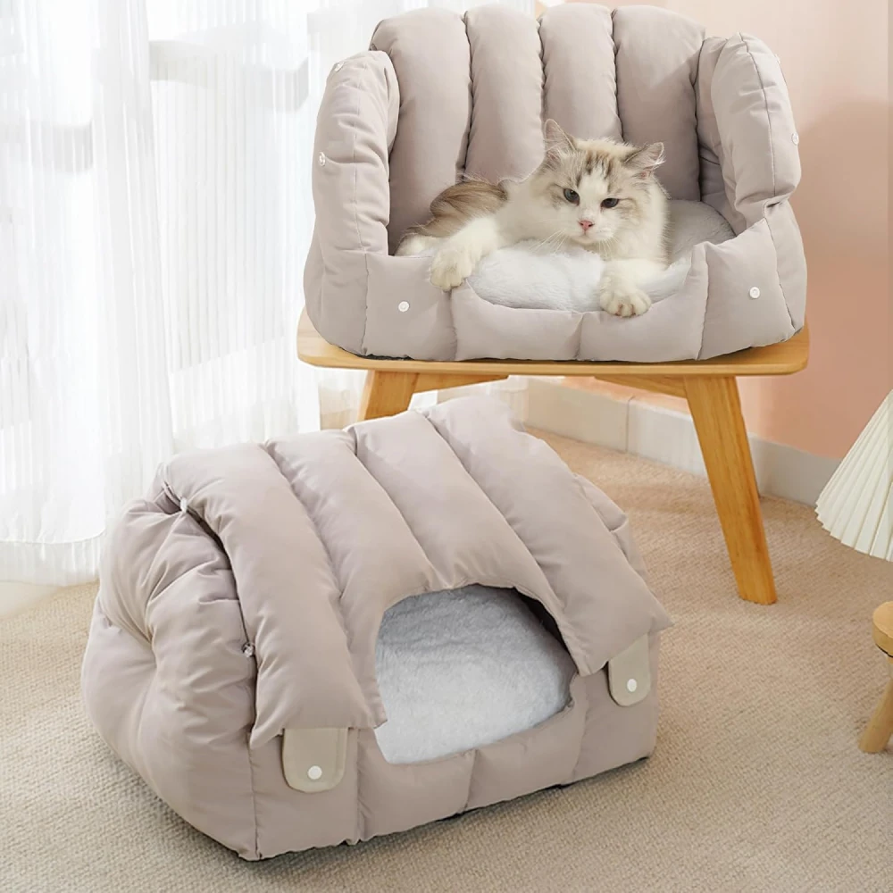 This cat bed is more than just a pet accessory; it’s a haven for your cat. The arched design creates a natural cave-like environment that cats instinctively love, offering them a sense of security and privacy. The soft, cushioned interior provides the ultimate comfort, ensuring your pet can relax completely and enjoy uninterrupted sleep. The bed’s non-slip, waterproof bottom ensures it stays firmly in place, even on slippery surfaces, while the detachable bedding makes cleaning a breeze. Ideal for use in any season, this bed keeps your cat warm in the winter and comfortable year-round.