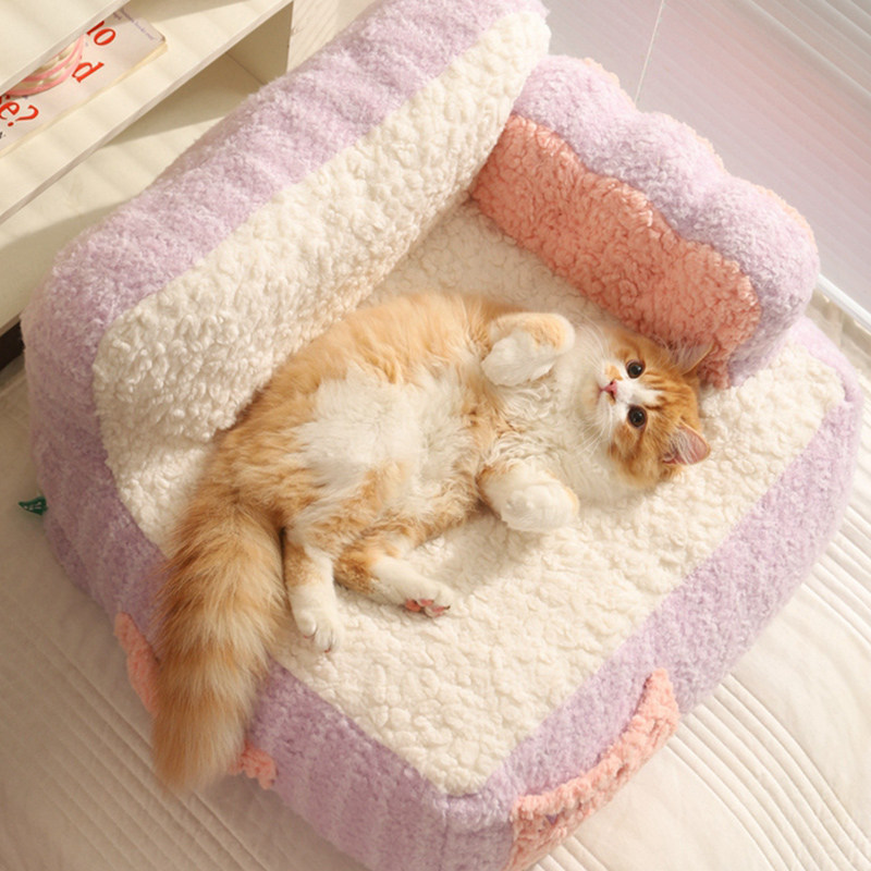 What sets our Cozy Cat Cake Sofa Bed apart is its combination of premium materials and thoughtful design. The thick, plush cotton cushions provide a luxurious sleeping surface, while the raised edges give your pet a sense of protection, reducing anxiety and promoting better sleep. The built-in heating feature is a must-have for cold weather, ensuring your pet stays warm and comfortable, no matter how low the temperature drops.