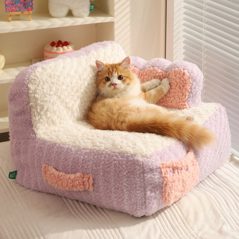 | Content | Wrap Your Pet in Cozy Comfort Give your furry friend the ultimate retreat with our Cozy Cat Cake Sofa Bed, specially designed for cats and small dogs. This delightful pet bed is more than just a sleeping spot—it's a haven of warmth and security, perfect for those chilly winter nights. Crafted from 100% cotton, this bed provides the softness and comfort your pet deserves, ensuring deep, restful sleep every time. ÂFeatures That Stand Out Our Cozy Cat Cake Sofa Bed isn’t just another pet bed. It's a thoughtfully designed piece that combines style with functionality. The thickened cotton pads offer unparalleled comfort, while the deep, nest-like design creates a sense of security that helps your pet relax completely. Measuring 21 x 18 x 15 inches, it’s the perfect size for most cats and small dogs, offering them enough room to stretch out yet still feel snug and protected. Â