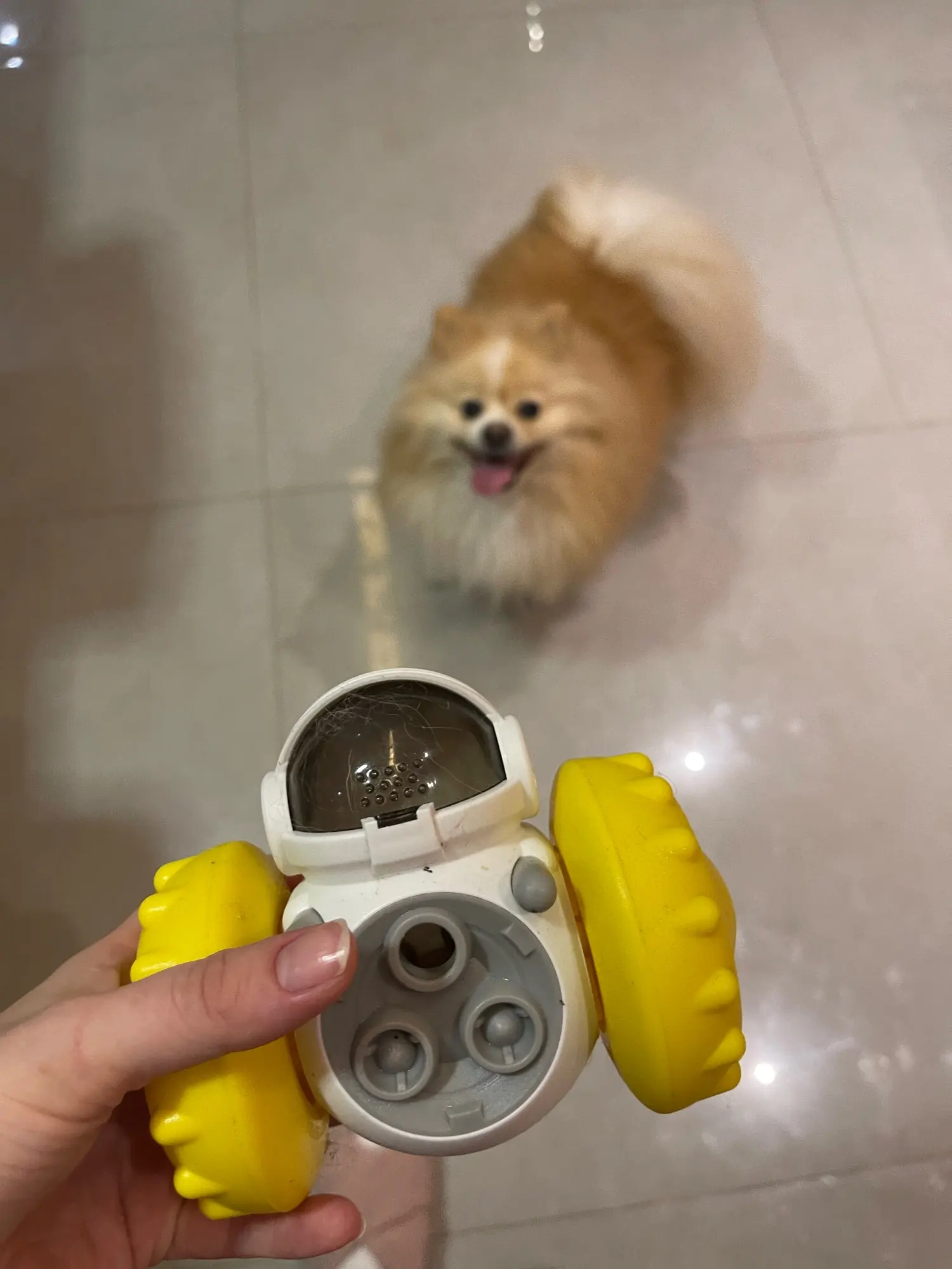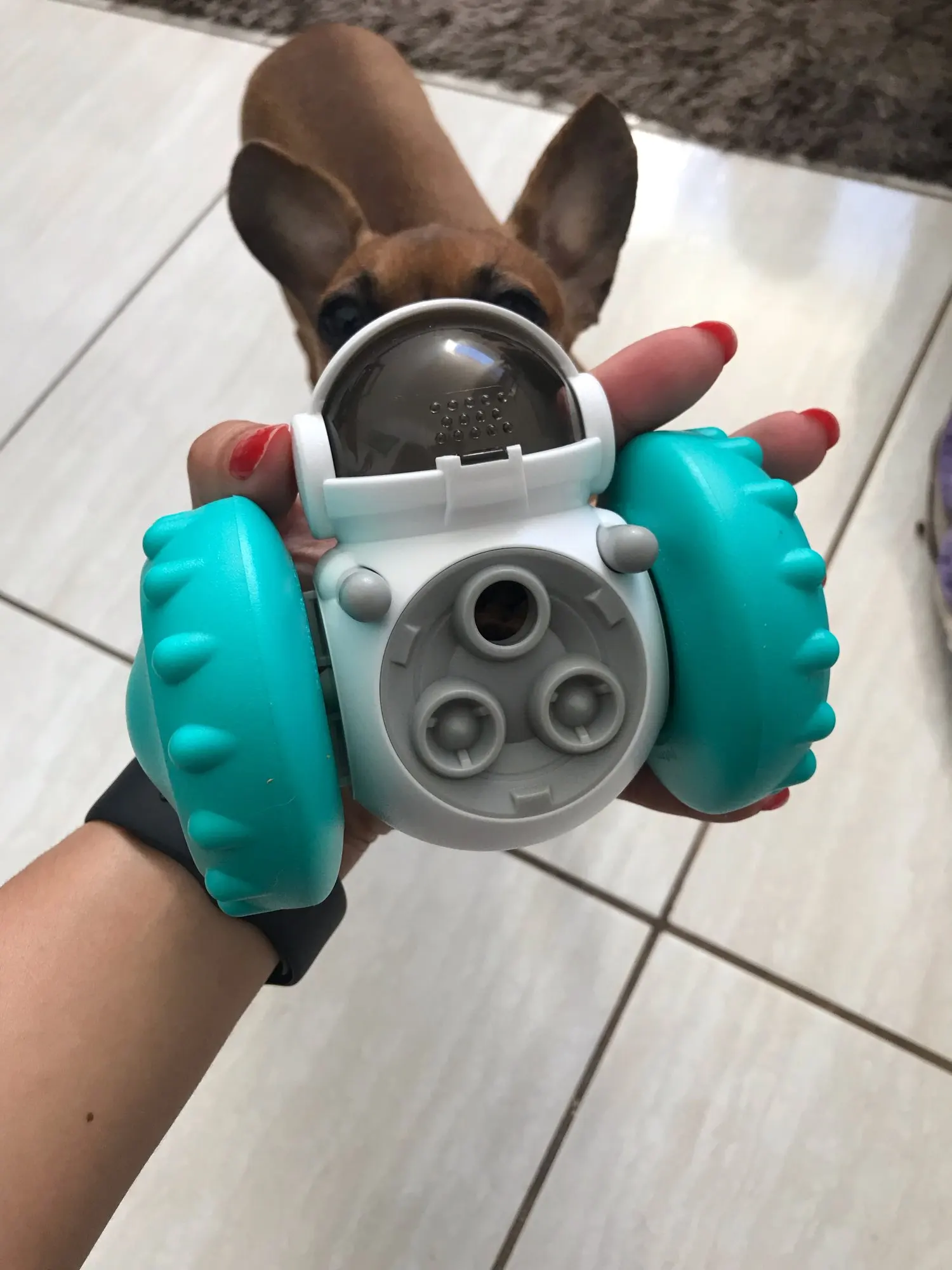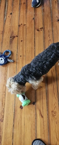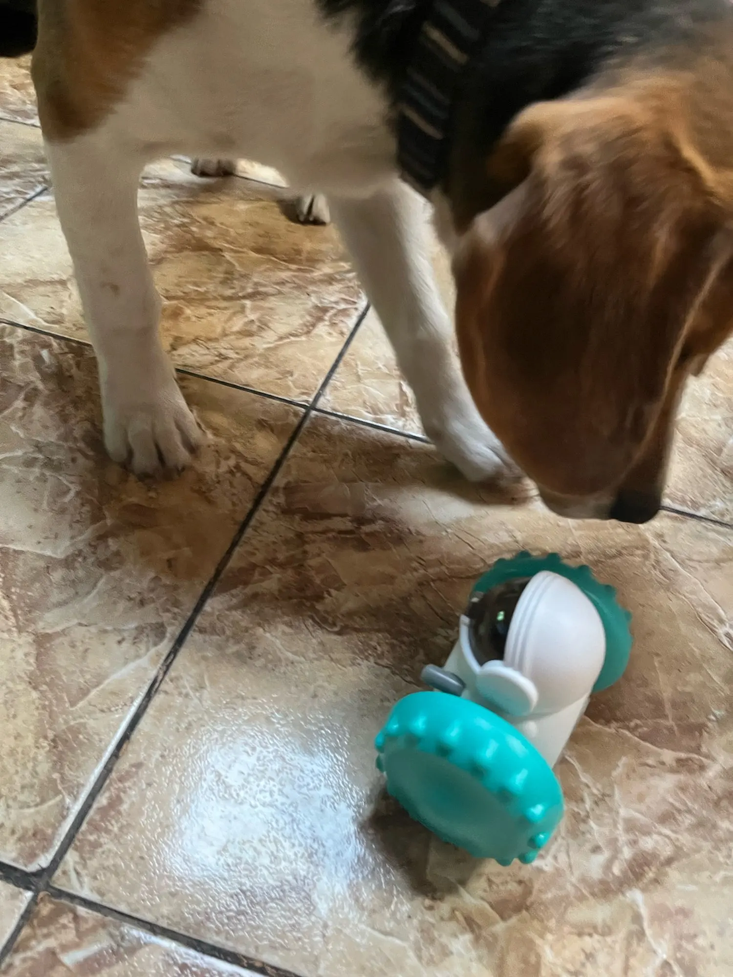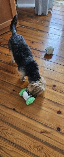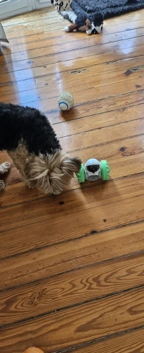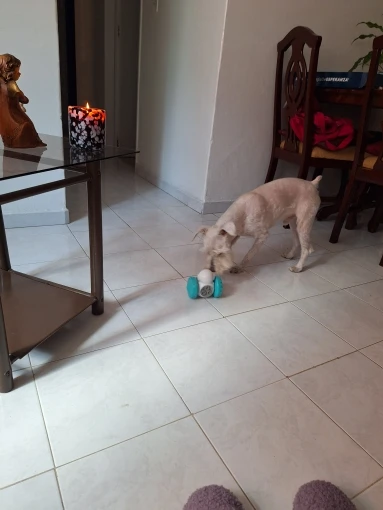 This has completely captivated her attention. The design is ingenious—she has to figure out how to maneuver it just right to get the out, which keeps her mentally stimulated and engaged for hours. It’s made of durable material that withstands her enthusiastic chewing, yet it’s lightweight enough for her to carry around the house. Cleaning it is also a breeze; just pop it open and rinse under warm water. I’ve noticed she’s less anxious when I’m away because she’s so focused on getting those treats! It’s truly been a game-changer in our household.