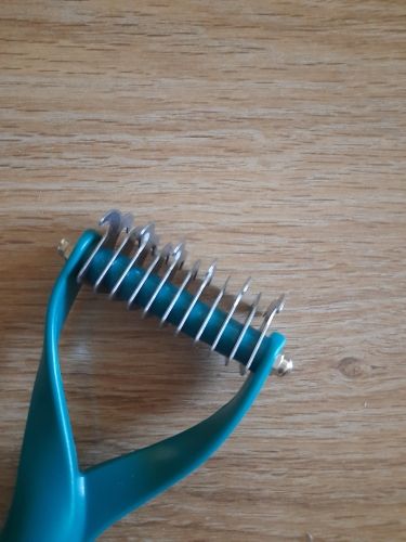 | Content | Revolutionize Pet Grooming with Our Double-Sided Fur Knot CutterMeet your new best friend in pet grooming: the Double-Sided Pet Fur Knot Cutter & Grooming Comb. Designed for both cats and dogs, this versatile tool is perfect for tackling stubborn knots, reducing shedding, and keeping your pet's coat looking its best. With its dual-blade design and user-friendly features, grooming your furry friend has never been easier.Product Features