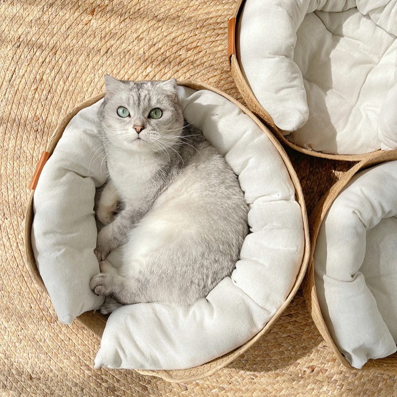 Handmade Bamboo Weaving Cozy Pet Bed for Cats & Small Dogs