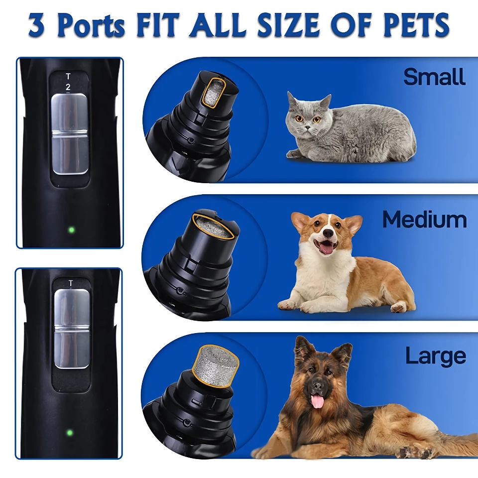 | Content | Effortless Nail Care for Your Furry FriendTrimming your dog’s nails doesn’t have to be a stressful experience. With the Powerful LED Pet Nail Grinder, you can achieve professional-level grooming from the comfort of your home. This innovative tool is designed to make nail care easy, precise, and safe, whether your pet is small, medium, or large. Say goodbye to the anxiety of traditional clippers and embrace a gentler, more controlled method that keeps your furry friend calm and comfortable.Advanced Features for Precision and SafetyOur nail grinder is equipped with a bright LED light that illuminates the nail, helping you avoid cutting too close to the quick. The 2-speed touch-switch allows you to customize the grinding experience based on your pet's needs, while the super quiet motor ensures that your pet remains calm throughout the process. With three adjustable ports, this grinder is suitable for dogs of all sizes, making it the perfect tool for multi-pet households.Why Choose the Powerful LED Pet Nail Grinder?
