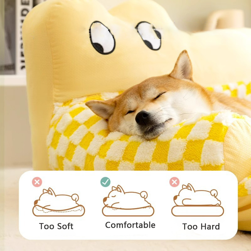 This pet bed is crafted from premium materials, combining high-quality cloth with thickened PP cotton to create a bed that is both soft and durable. The cloud-like cotton filling offers exceptional comfort, allowing your pet to sink into a deep, restful sleep. The bed is also fully detachable, making it incredibly easy to clean—just toss it in the washing machine, and it’s good as new! Additionally, the bottom of the bed features a drip-plastic coating, making it waterproof and non-slip, so your pet stays secure even on slippery surfaces.