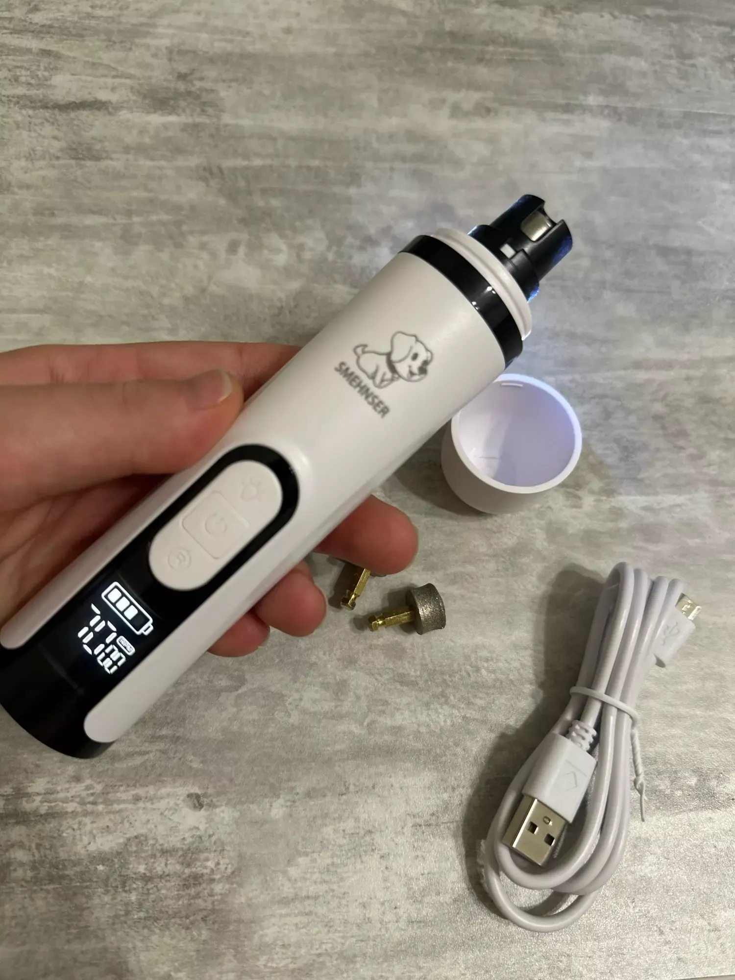 | Content | Effortless Pet Nail Care with Precision and SafetyGive your furry friend the grooming experience they deserve with our USB Rechargeable Pet Nail Grinder, designed for both dogs and cats. This electric nail trimmer makes it easier than ever to keep your pet's nails at the perfect length, reducing the risk of painful overgrowth and split nails. The built-in LED light illuminates the nail area, ensuring you can see exactly what you’re doing for a safer and more precise grooming session.Why Choose Our Pet Nail Grinder?Unlike traditional nail clippers, our electric grinder offers a stress-free, painless way to trim your pet's nails. The low-noise, low-vibration design makes the process smooth and comfortable, even for the most anxious pets. Whether you have a large dog or a small cat, this versatile tool has you covered with two grinding options tailored to different nail sizes. Plus, the durable grinding head is built to last, so you won’t have to worry about frequent replacements.Key Features